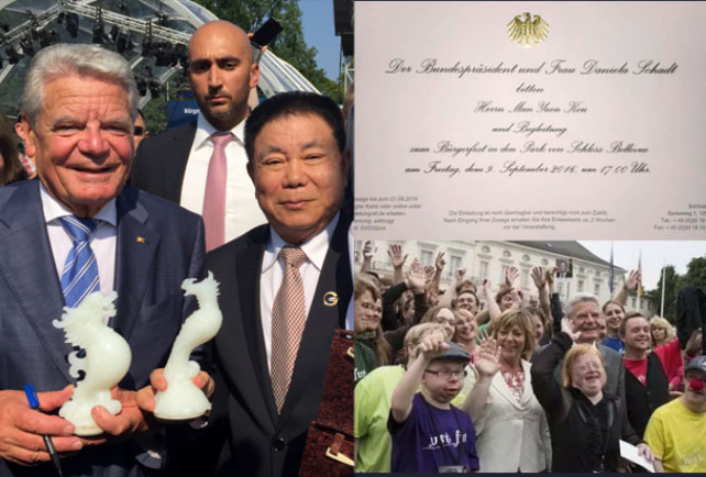 高迪安董事长顾文元先生受邀出席德国总统花园庆典,在庆典上将海马龙、海马凤赠予德国联邦总统阿希姆•高克先生,高克总统盛赞“这是我见过的最美的礼物”。