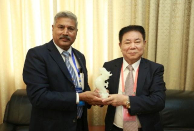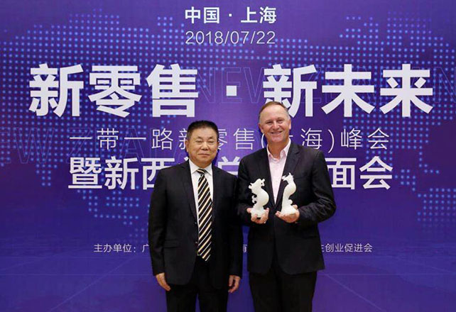 高迪安集团董事长顾文元赠予海马龙海马凤给新西兰总理约翰·基