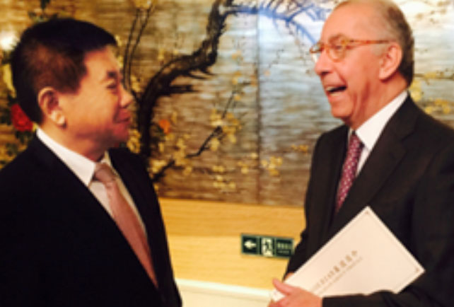 高迪安出席第七届国际资本峰会,董事长顾文元先生与原中国商务部副部长、原博鳌亚洲论坛秘书长龙永图先生以及法国前总理Jean-Pierr先生、法国前外交部秘书长Gerard Errera先生共叙真爱人文话题。