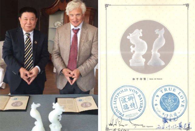 高迪安董事长顾文元先生与德国巴伐利亚王子共比“真爱手心”。